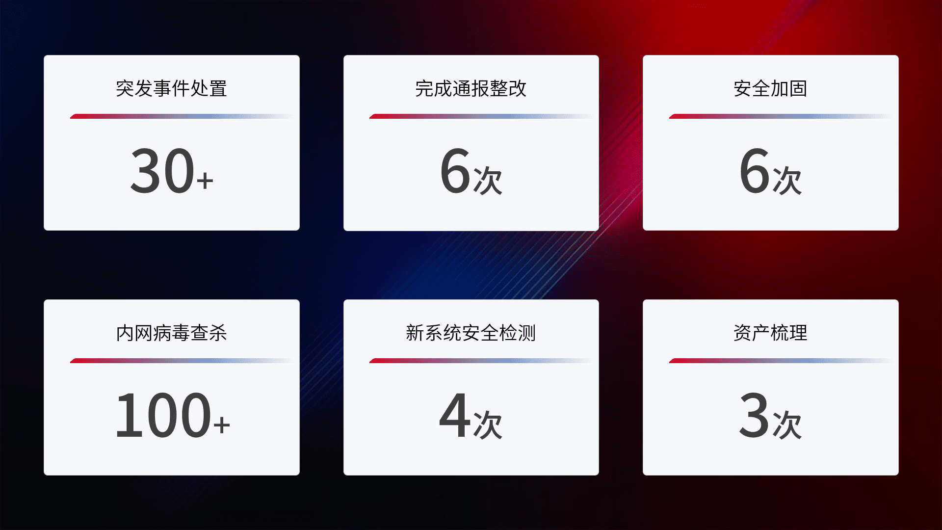 网络安全加固与风险管理:通过技术加固手段,,,,如加强区域隔离,,,缩减攻击内网横向移动的范围;优化现有网络安全管理制度,,降低网络威胁暴露面,,减少被黑客攻击的可能性。。